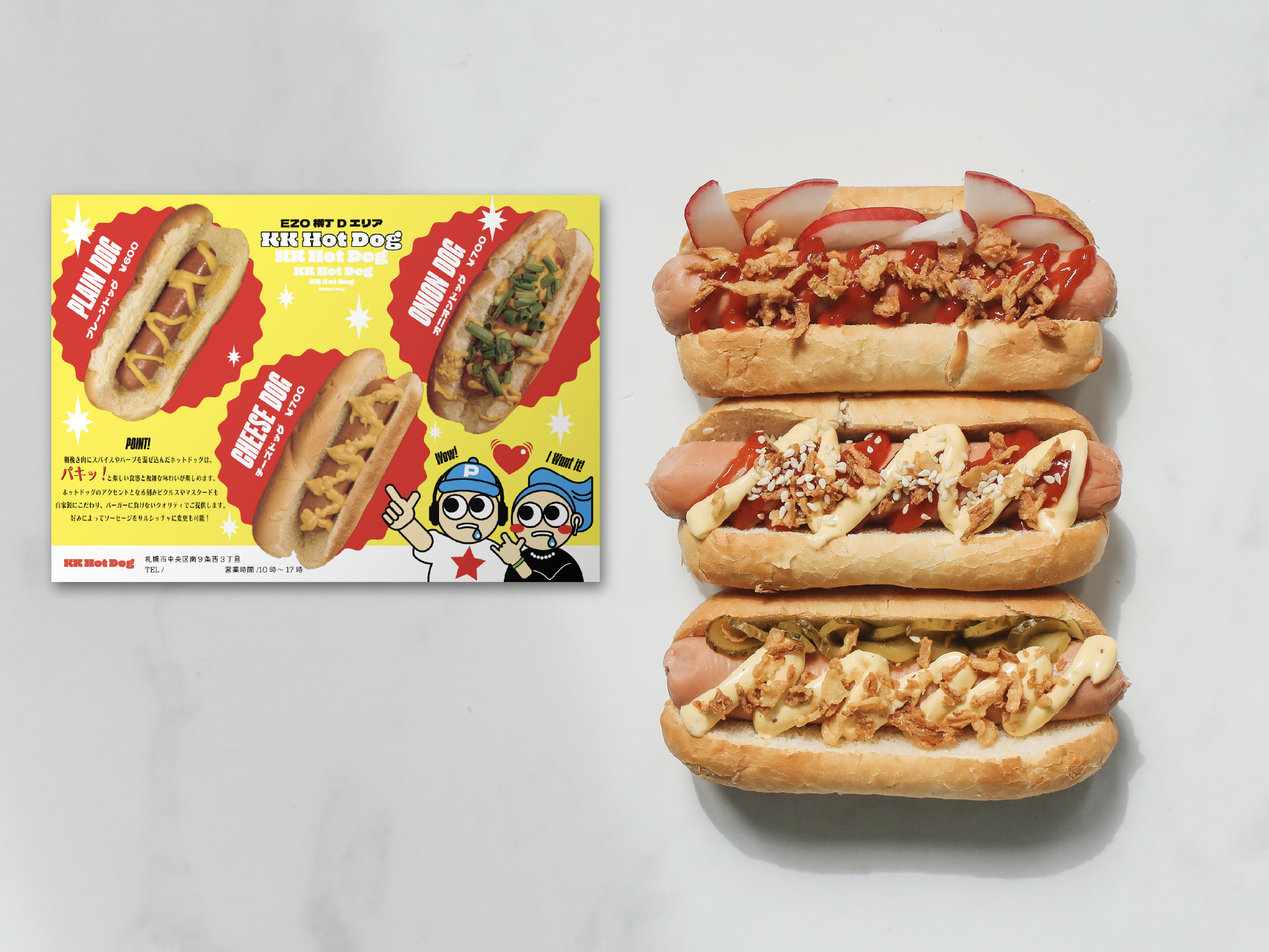 CONCEPT : フェスと言うことでポップなデザインにし、直感的にホットドッグを連想させる黄色と赤をメインに。最初はDJを目指したのに、いつの間にかパリピ風のカップルになってました。