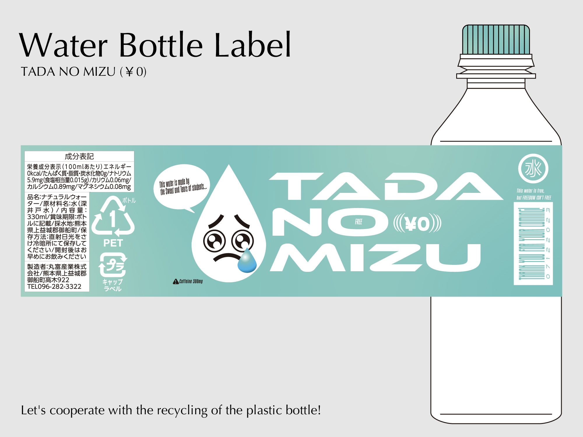 CONCEPT : 従来の飲料水には無いスポーティなロゴ+少しのユニークさで、記憶に残るようなデザインを目指した。