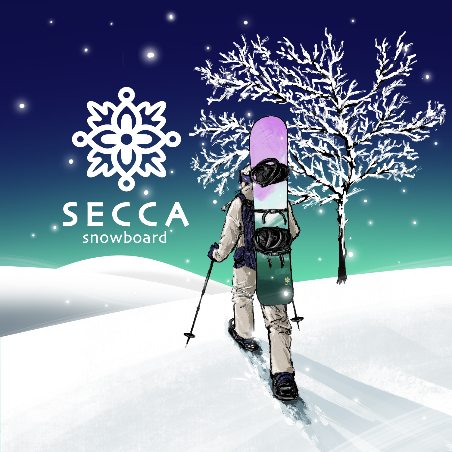 スノーボードブランド SECCA snowboard さんの2022年ステッカー用のデザインを手掛けさせていただきました。